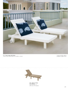 L78 - Chaise Lounge with Wheels Colour and fabric options Shown in White (throw pillows not available as shown) available on pages 41-42 L78 - Chaise Lounge with Wheels 78 x 24 x 38” (12) 198 x 61 x 97 cm (30) 16