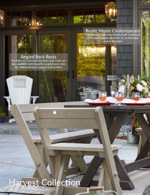 The Harvest Collection benches and chairs are