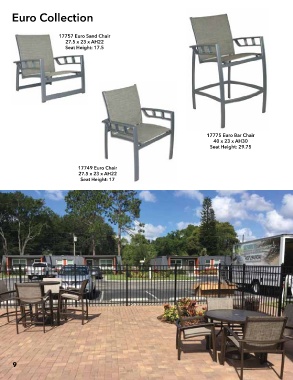 Euro Collection 17757 Euro Sand Chair 27.5 x 23 x AH22 Seat Height: 17.5 17775 Euro Bar Chair 40 x 23 x AH30 Seat Height: 29.75 17749 Euro Chair 27.5 x 23 x AH22 Seat Height: 17 9