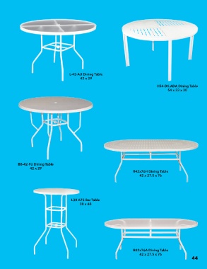 L-42-AU Dining Table 42 x 29 H54-BK-ADA Dining Table 54 x 33 x 30 BB-42-FU Dining Table 42 x 29 R42x76H Dining Table 42 x 27.5 x 76 L30 A75 Bar Table 30 x 40 R42x76A Dining Table 42 x 27.5 x 76 44