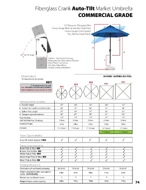 Center Pole Length (no bottom pole) 66” 74” 86” 74” 86”