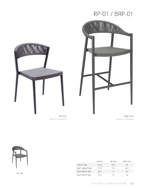 RP-01 / BRP-01 RP-01S BRP-01A ANTHRACITE | ANTHRACITE ANTHRACITE | ANTHRACITE RP-01S RP-01A BRP-01A HEIGHT (IN) 30.75 30.5 43 SEAT HEIGHT (IN) 17.75 17.5 29.5 SEAT WIDTH (IN) 20.5 17 16 RP-01A SEAT DEPTH (IN) 21.5 19 18 OUTDOOR | CLASSIC OUTDOOR 124
