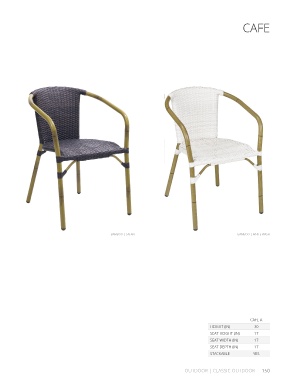 CAFE BAMBOO | SAFARI BAMBOO | WHITE WASH CAFE A HEIGHT (IN) 30 SEAT HEIGHT (IN) 17 SEAT WIDTH (IN) 17 SEAT DEPTH (IN) 17 STACKABLE YES OUTDOOR | CLASSIC OUTDOOR 150
