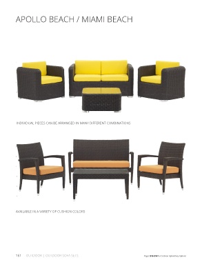 APOLLO BEACH / MIAMI BEACH INDIVIDUAL PIECES CAN BE ARRANGED IN MANY DIFFERENT COMBINATIONS AVAILABLE IN A VARIETY OF CUSHION COLORS 161 OUTDOOR | OUTDOOR SOFA SETS Pages 215-216 for Cushion Upholstery Options