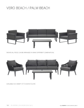 VERO BEACH / PALM BEACH INDIVIDUAL PIECES CAN BE ARRANGED IN MANY DIFFERENT COMBINATIONS AVAILABLE IN A VARIETY OF CUSHION COLORS 163 OUTDOOR | OUTDOOR SOFA SETS Pages 215-216 for Cushion Upholstery Options