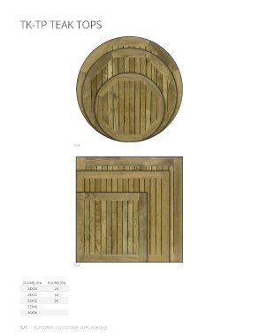 TK-TP TEAK TOPS TEAK TEAK SQUARE (IN) ROUND (IN) 24X24 24 24X32 32 32X32 36 32X48 36X36 171 OUTDOOR | OUTDOOR TOPS & BASES