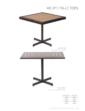 WC-PT / TA-LC TOPS WC-PT TOPS INDO WICKER EDGE | FAUX TEAK INLAY TA-LC TOPS BRONZE | ALSO AVAILABLE IN WARM GRAY WC-PT TOPS TA-LC TOPS 24X24 24X32 32X32 32X32 32X48 32X48 36X36 36X36 OUTDOOR | OUTDOOR TOPS & BASES 172