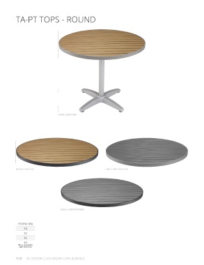 TA-PT TOPS - ROUND SILVER | FAUX TEAK BLACK | FAUX TEAK GRAY | GRAY FAUX TEAK BLACK | GRAY FAUX TEAK ROUND (IN) 24 32 36 48 (Not compatible with BH base) 173 OUTDOOR | OUTDOOR TOPS & BASES