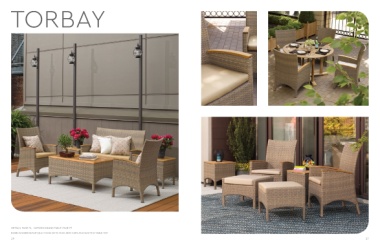 TORBAY DETAILS PAGE 71, OxFORD DINING TABLE PAGE 77 RESIN WICkER IN ANTIQUE FINISh WITh TEAk ARM CAPS AND SLATTED TABLE TOP 36 37
