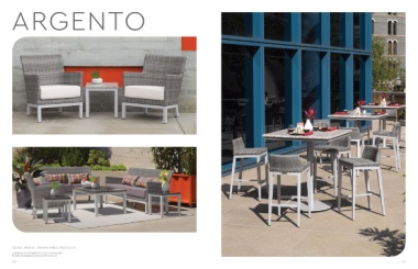ARGENTO DETAILS PAGE 69, TRAVIRA TABLES PAGES 65-67 ALUMINUM POWDER COATED FRAMES RESIN WICkER IN ARGENTO FINISh 06 07