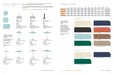 MARKET UMBRELLAS Market Umbrellas Both practical and attractive, umbrellas will provide the finishing touch for any outdoor UMBRELLA FABRICS