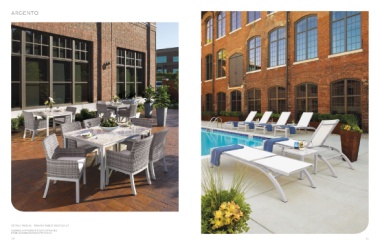 ARGENTO DETAILS PAGE 69, TRAVIRA TABLES PAGES 65-67 ALUMINUM POWDER COATED FRAMES RESIN WICkER IN ARGENTO FINISh 10 11
