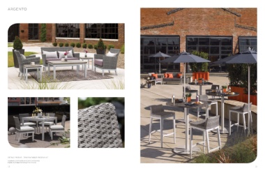 ARGENTO DETAILS PAGE 69, TRAVIRA TABLES PAGES 65-67 ALUMINUM POWDER COATED FRAMES RESIN WICkER IN ARGENTO FINISh 12 13